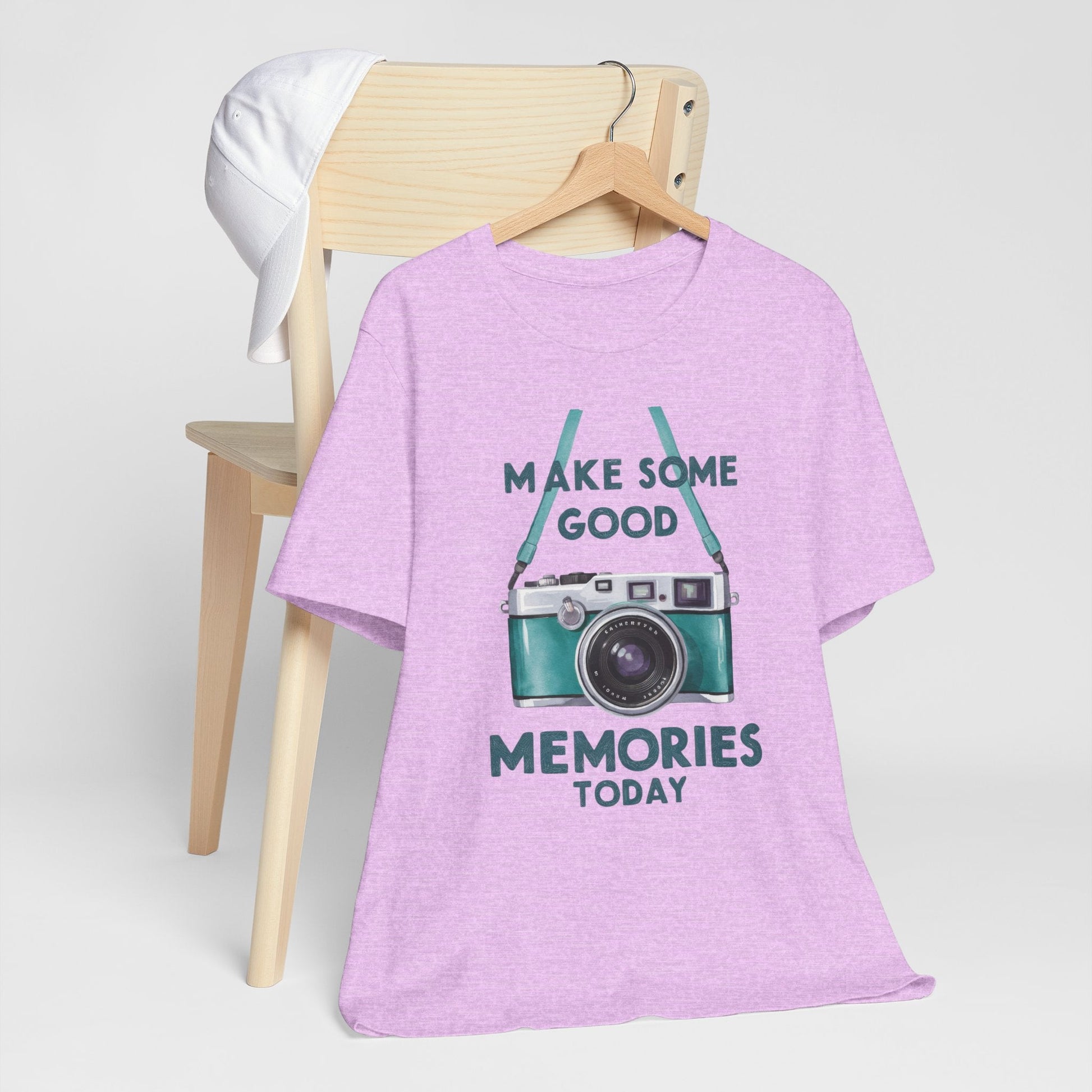 This Camera Memories T-Shirt is a must-have for photography lovers. The vintage camera design gives off a nostalgic vibe, making it a perfect gift for memory makers. It is a unisex short sleeve shirt that is versatile and can be worn casually or semi-formally. Ideal for adults, this tee is made with 100% Airlume combed and ring-spun cotton, ensuring breathability and comfort. Perfect for active and leisure wear, this T-shirt is perfect for those who appreciate the art of photography.